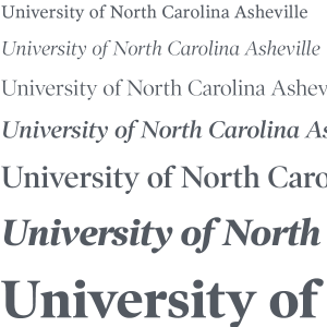 Typography plays an integral role in accurately expressing the personality of UNC Asheville. The following typefaces can be purchased for use on branded materials.
